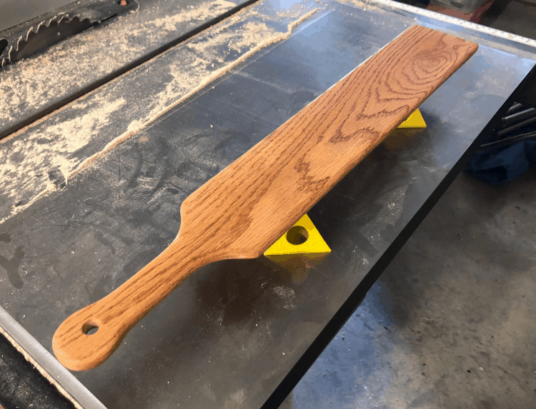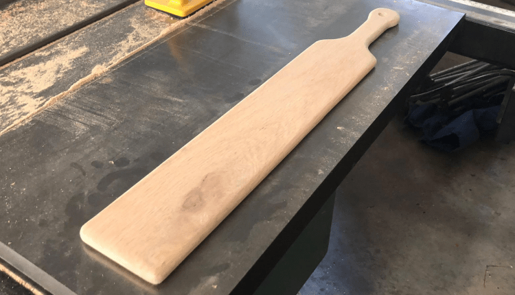 Picking the right piece of wood is important! Here we measure and form the spanking paddle design.