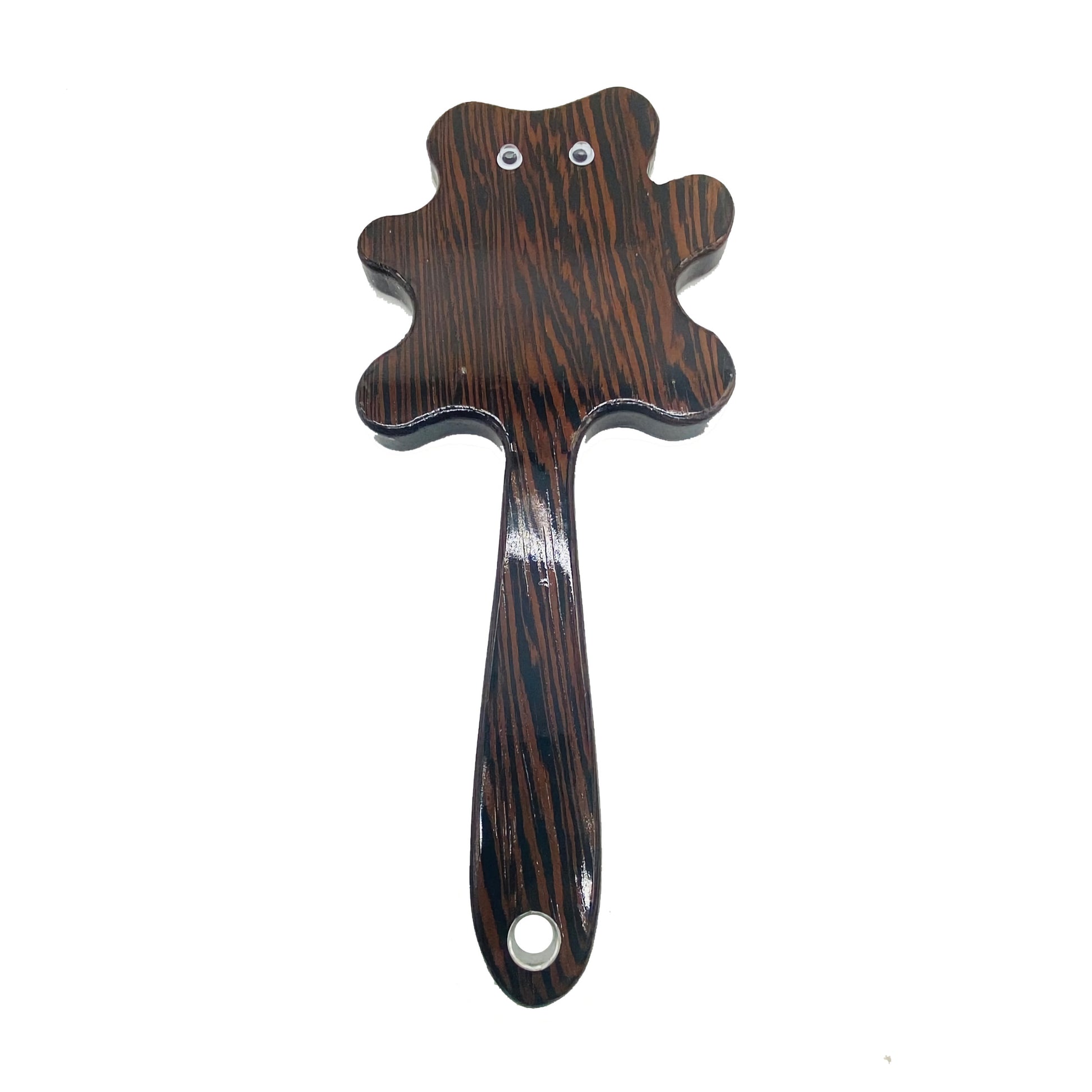 Master Control's Woodshop presents this Bear OTK Wooden Hardwood Spanking Paddle, a delightful tool that consistently elicits an appreciative "ouch"! Offered in a variety of stunning wood finishes, each paddle is treated with a UV protective coating to ensure durability. Our exquisitely designed paddles are built to endure, catering to the desires of both submissive and dominants alike. With a strong emphasis on quality and safety, Master Control's Woodshop & Toys has meticulously crafted these spanking paddles to enhance your experience while prioritizing your well-being. This OTK paddle is shaped with bat wings, but also give points for sensation play. Wide enough to set balls between wings.