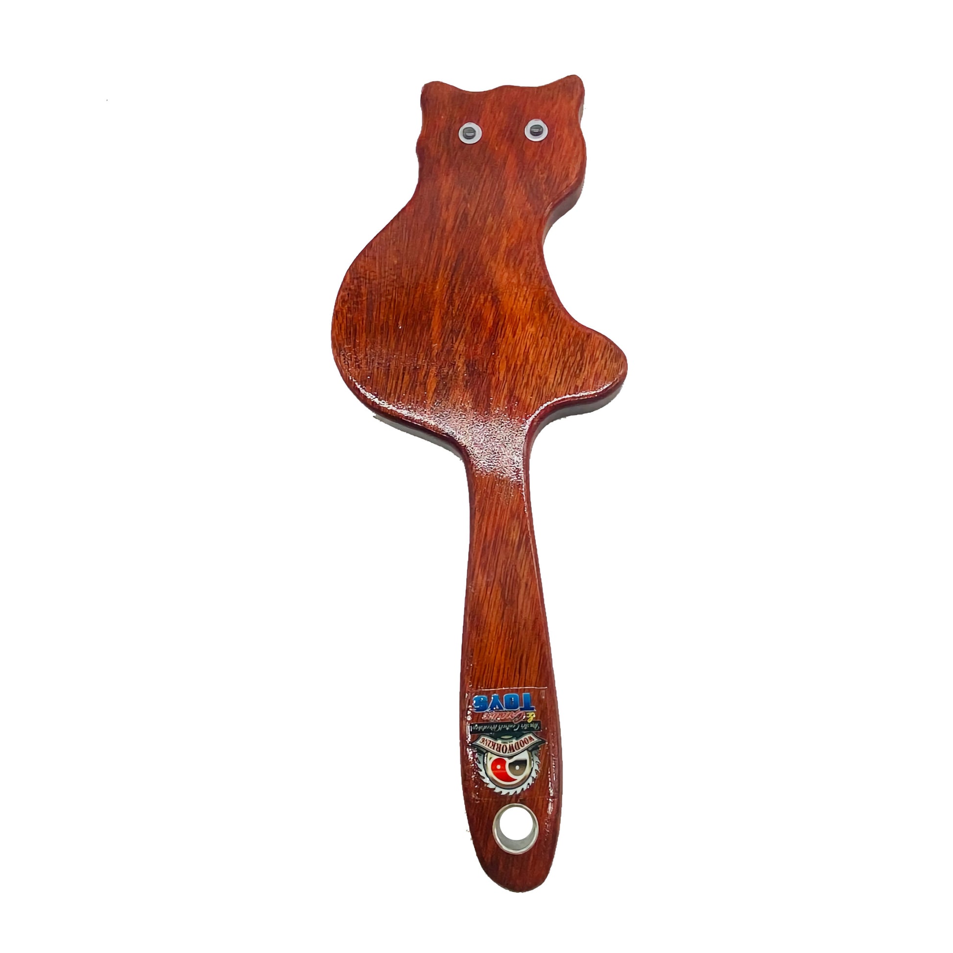 Master Control's Woodshop presents this Cat OTK Wooden Hardwood Spanking Paddle, a delightful tool that consistently elicits an appreciative "ouch"! Offered in a variety of stunning wood finishes, each paddle is treated with a UV protective coating to ensure durability. Our exquisitely designed paddles are built to endure, catering to the desires of both submissive and dominants alike. With a strong emphasis on quality and safety, Master Control's Woodshop & Toys has meticulously crafted these spanking paddles to enhance your experience while prioritizing your well-being. This OTK paddle is shaped with bat wings, but also give points for sensation play. Wide enough to set balls between wings.